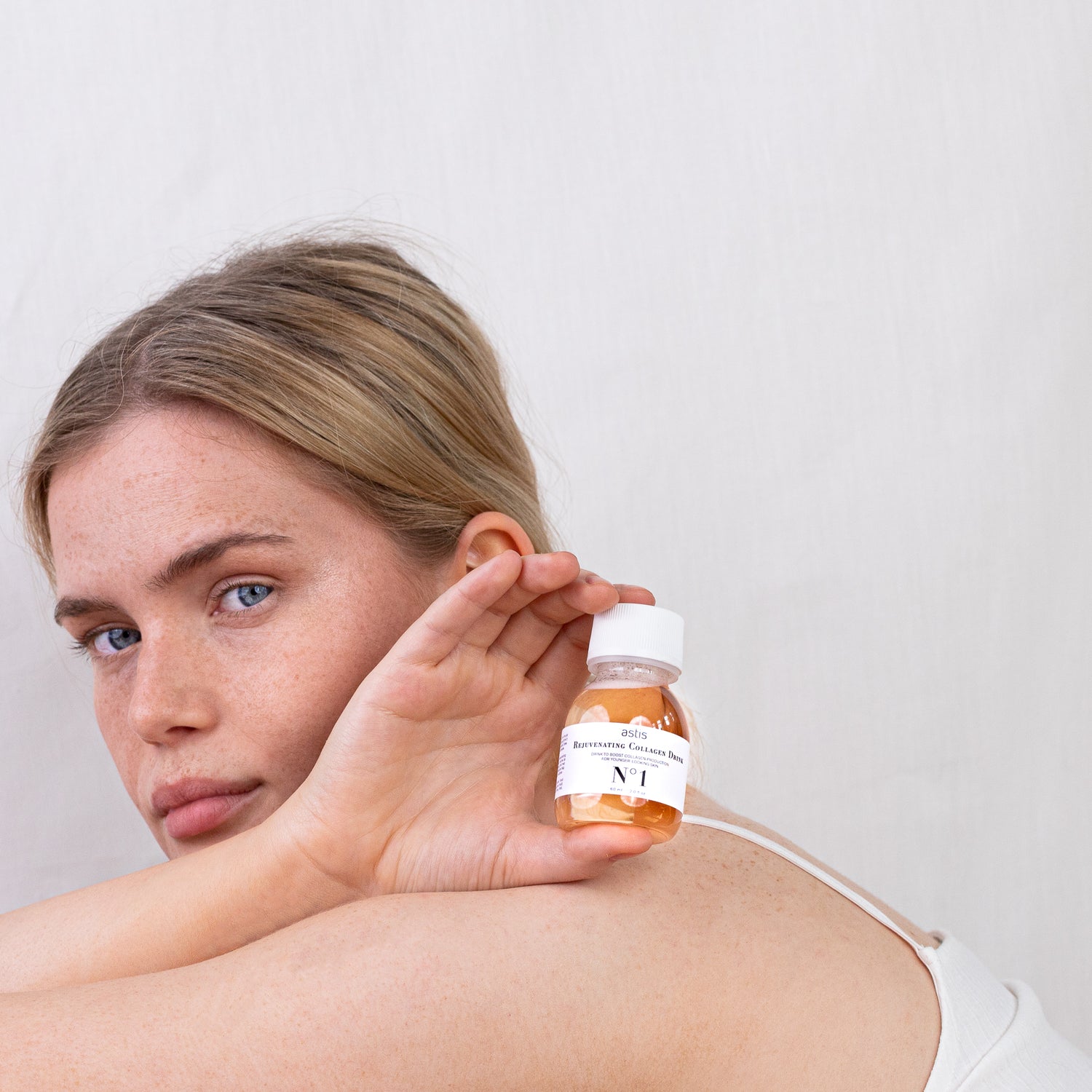 Aqua, Bovine Collagen Peptides (1%), Fruit Extracts, Food acids (E270, E330, E280, E236), Natural Aroma, Herbal Extracts, Preservative (E202), Sweetener (E960), Color (Black Carrot Concentrate, Carthamus Extract, Sucrose).